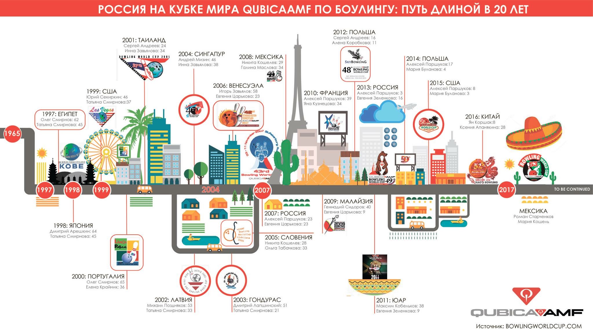 История выступления россиян на кубках мира QubicaAmf 1997-2017.